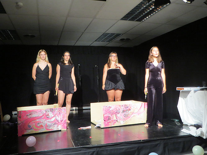 Dins el cicle "A prop", la programació cultural de petit format que porta als barris de la ciutat de Girona propostes artístiques de creadors emergents de les comarques gironines, el dissabte 21 de juny de 2025 la companyia "Ninyas de Papá" varen representar l'espectacle "F.O.M.O de mi funeral" al Centre Cívic del barri de Palau, un apropament a la mort en primera i tercera persona. Amb la intenció d’investigar el cinisme, la tradició i la convenció representen la cerimònia d'un funeral. Instrumentalitzades pel sistema cristià i capitalista es pregunten quin sentit té el concepte de la mort. Dramatúrgia i direcció: Raquel Díez. Intèrprets: Júlia Roch, Carla Font, Berta Cardona i Raquel Díez. Coproducció: Antic Teatre i Canal. Centre de creació d’arts escèniques Salt/Girona.