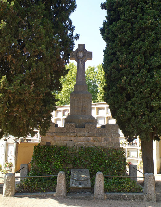 Aquest monument funerari, situat al Cementiri Vell de Girona, es va inaugurar el 8 de novembre de 1909 i en va ser promotora la Junta del Cementiri de Girona. Porta una inscripció on es llegeix: "A los defensores de Gerona en los sitios de 1808 y 1809. La Junta del Cementerio en 1909". Va assistir a l'acte inaugural la junta en ple i una Comissió del Sometent presidida pel vocal de la Junta Organitzadora, el marquès de Camps, qui va dipositar una corona i va fer un parlament honorant la seva memòria.