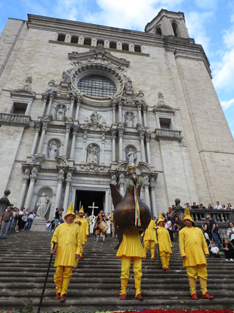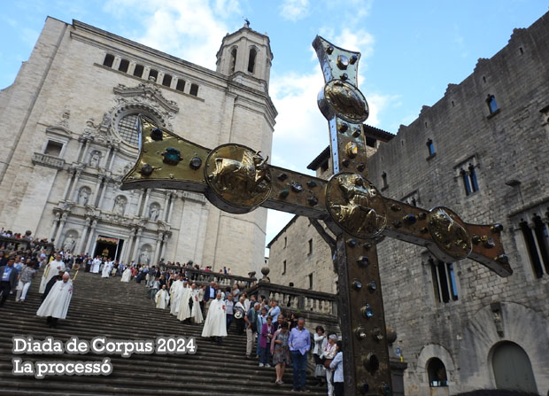 Al llarg de la jornada, desenes de voluntaris de la dotzena de confraries que conformen la Junta de Confraries van engalanar els carrers del Barri Vell amb les catifes amb decoracions florals, com a preludi de la missa solemne que es va dur a terme a la Catedral, acabada la qual l'Àliga va fer el ball d'honor, i seguidament s'inicià la processó, que va desfilar fins a la Basílica de Sant Feliu.