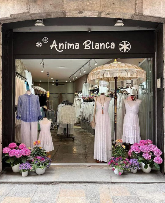 Botiga situada al cor del Barri Vell, al carrer Ballesteries, Ànima Blanca està especialitzada en roba per home i dona 100% de cotó i lli, i complements, i ven amb la idea que les seves peces no es puguin trobar a altres llocs a Girona. |