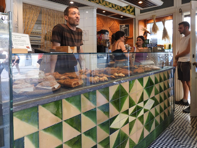 Durant la Guerra Civil els soldats republicans que fugien cap a l'exili van cremar la fleca sencera, deixant-la totalment destruïda. A finals de l'any 1939, els propietaris van encarregar a Josep Maria Busquets Mollera la reconstrucció de la fleca. Des de llavors, la botiga es manté pràcticament intacta. Com a trets característics del local, destaca la façana de ferro forjat, les típiques rajoles de La Bisbal, els àngels de Rafael Masó a banda i banda de la porta de l'obrador, una reproducció d'un relleu del Bon Pastor i la còpia d'un dels sarcòfags que es troben al presbiteri de l'església de Sant Feliu de Girona. L'any 2018 la Maria i en Xevi acullen el negoci recuperant el nom antic i respectant la decoració de la fleca.