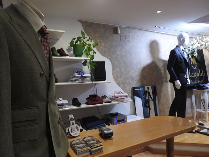 Abans d'obrir la seva primera botiga l'any 1968, Antoni Magaldi ja tenia una sastreria a sobre de La Moda, a la plaça del Vi. Quan es va voler començar a dedicar a la confecció va obrir el local de Santa Clara, des dels seus orígens especialitzat en roba d'home i de vestir. Actualment ha incorporat una secció més d'esport, però el seu punt fort sempre ha estat el vestit d'home de qualitat. Totes les peces que tenen són producte nacional i treballen amb marques com Eduardo Boss, Ramón Sanjurjo, Florentino, Octavio Nuccio, Hugo Dax i altres. També tenen una marca pròpia de Magaldi.