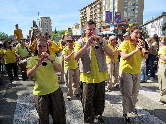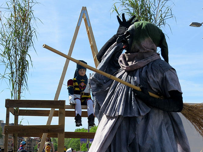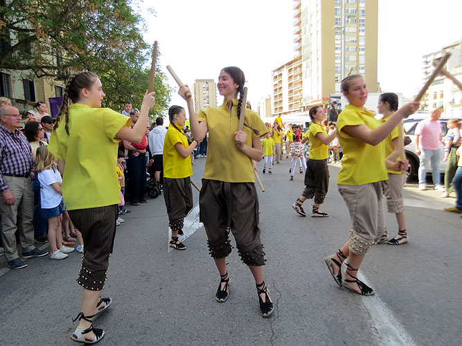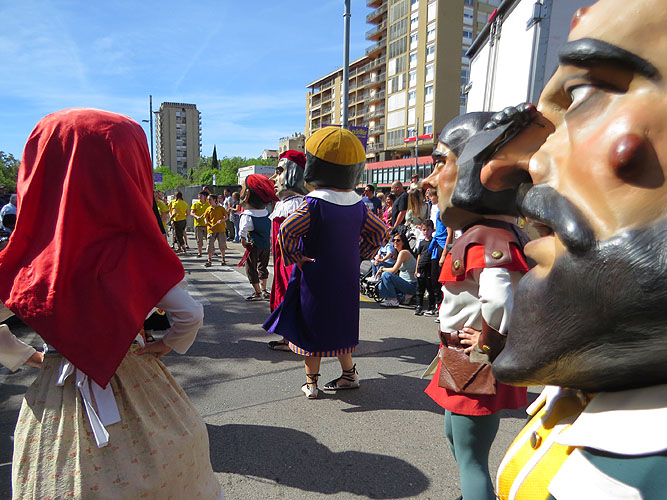 En aquesta cercavila hi han participat el components de Fal·lera Gironina, amb els capgrossos, el grup de bastoners, els quatre gegants Carlemany, Anna Gironella, Fèlix i Àngels, i la música de la colla gegantera.