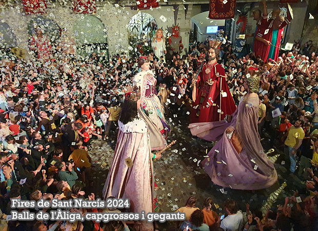El divendres 25 d'octubre 2024, dia d'inici de les Fires de Sant Narcís, va tenir lloc el Pregó, activitat que dona el tret de sortida de les diverses activitats. Acabat el pregó, varen ballar a la plaça l'Àliga, els capgrossos i els quatre gegants de la ciutat. Finalitzat el ball, es varen disparar les "mosques" de paper, enmig de les quals s'hi havien inclòs perfils de capgrossos, la recollida dels quals era puntuable per la Festa Major dels 4 rius.