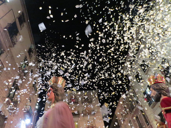 Acabat el pregó, varen ballar a la plaça l'Àliga, els capgrossos i els quatre gegants de la ciutat. Finalitzat el ball, es varen disparar les "mosques" de paper, enmig de les quals s'hi havien inclòs perfils de capgrossos, la recollida dels quals era puntuable per la Festa Major dels 4 rius.