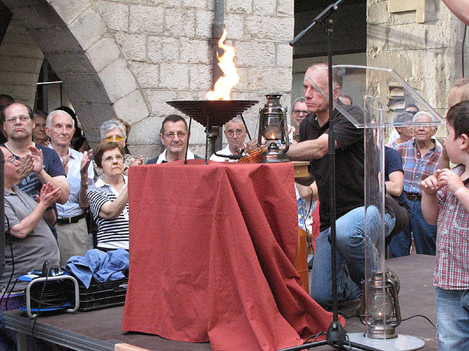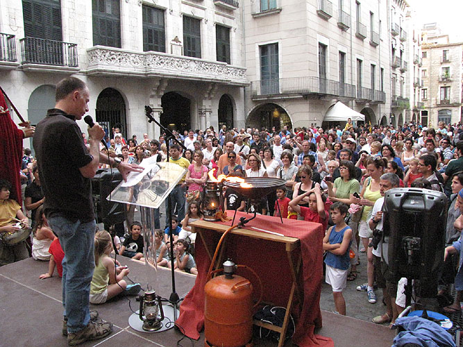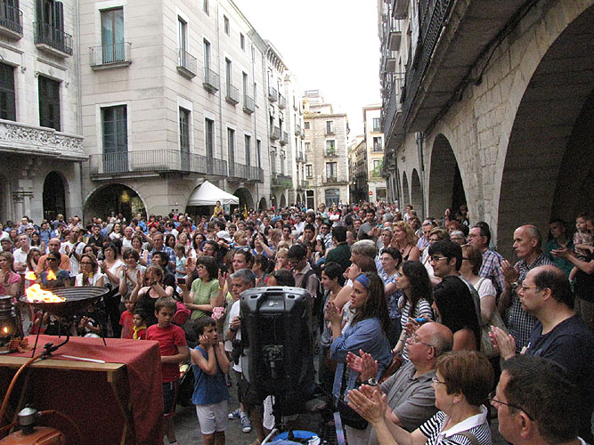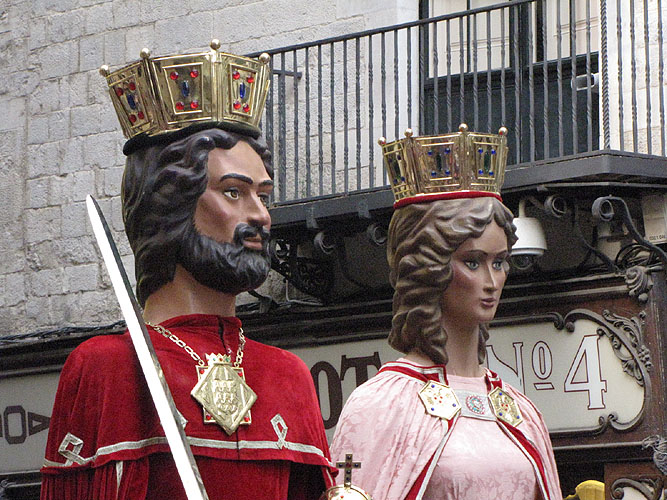 Els gegants de la ciutat, Carlemany i Anna Gironella, a la plaça del Vi