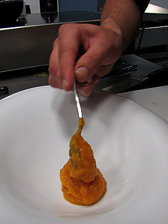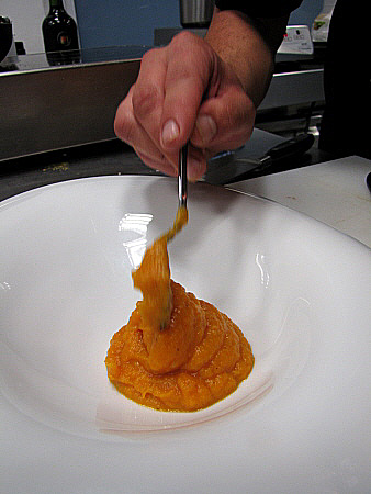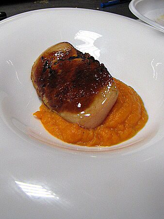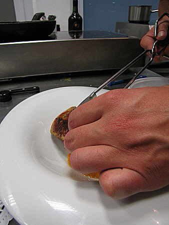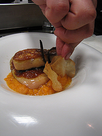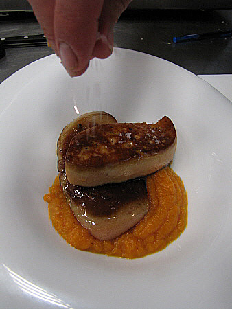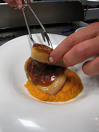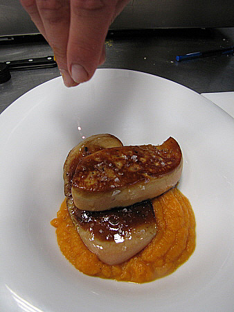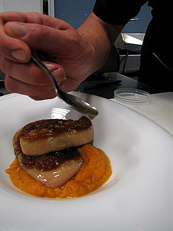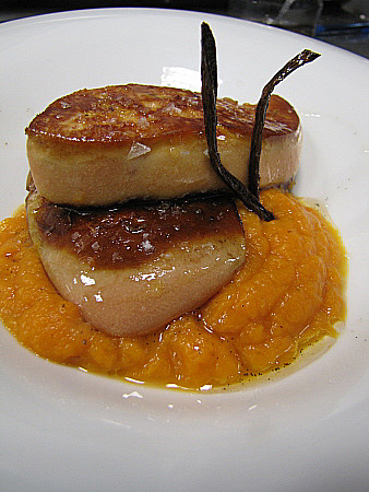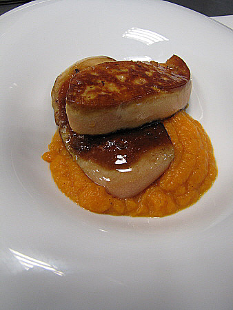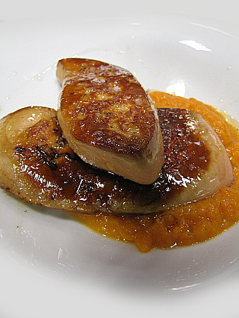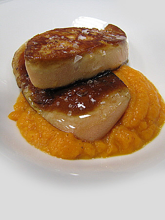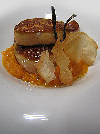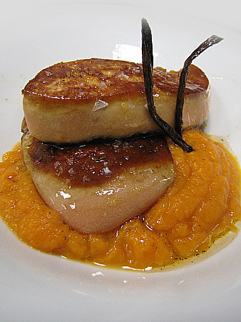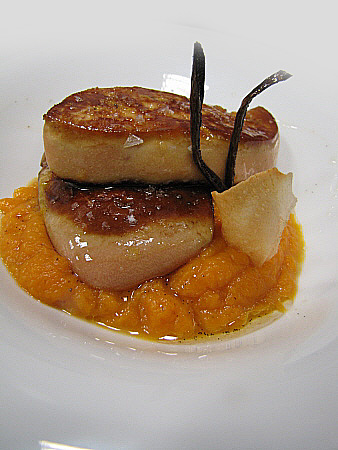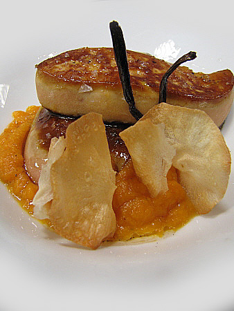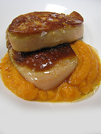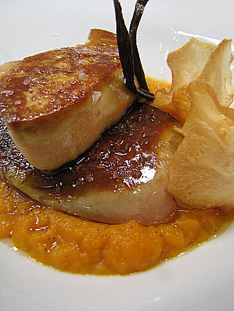 Planxat de foie gras amb carbassa i oli de vainilla