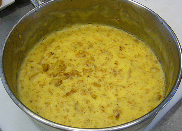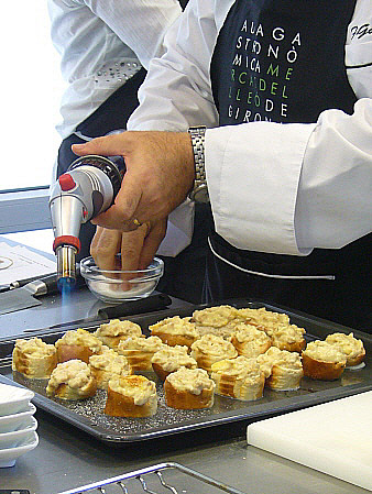 Cresteta caramel·litzada, crema de llet i rossinyols amb taronja i una galeta d’ametlles