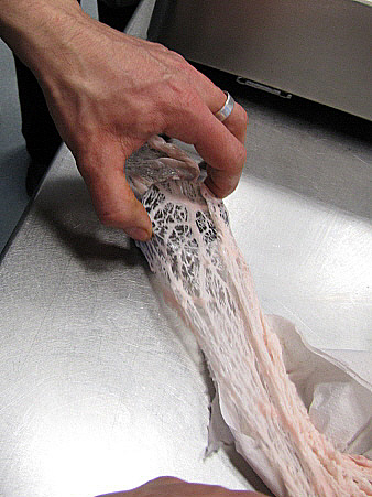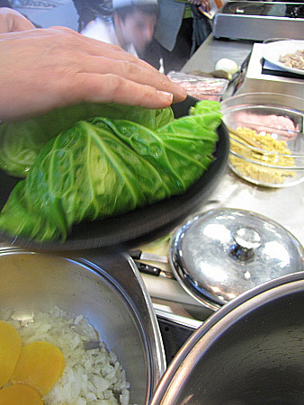 Peu de porc farcit de farcellet de col setsemanera amb nap negre i mill