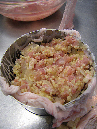 Peu de porc farcit de farcellet de col setsemanera amb nap negre i mill
