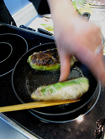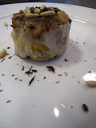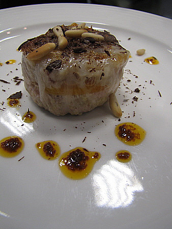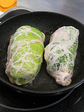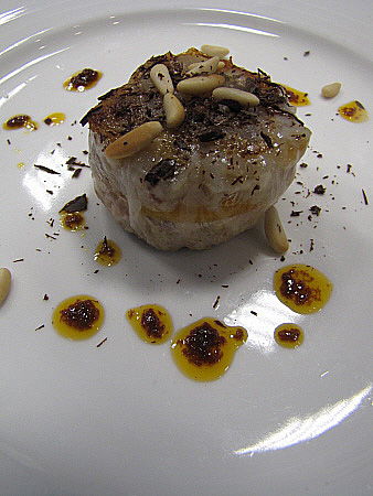 Peu de porc farcit de farcellet de col setsemanera amb nap negre i mill