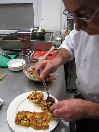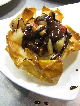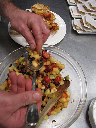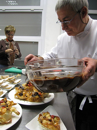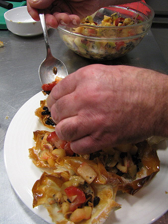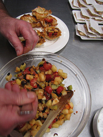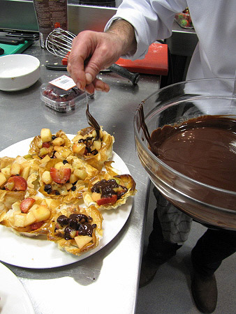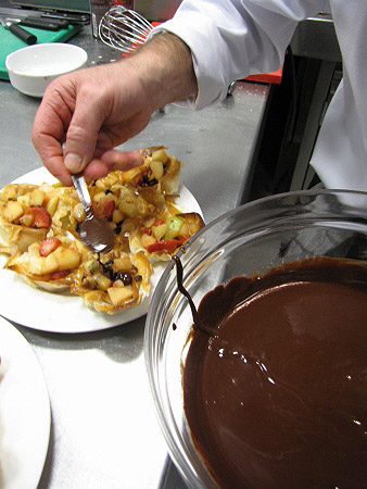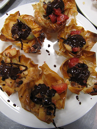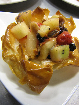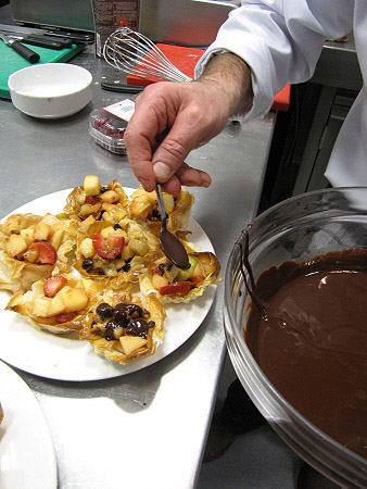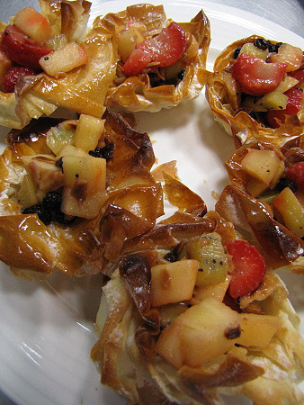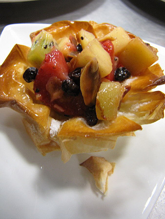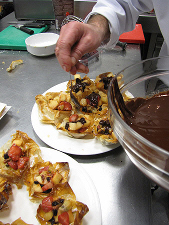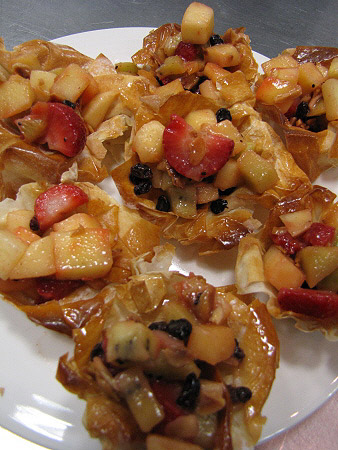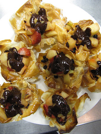 Tartaleta de filo amb fruites de Nadal i salsa de xocolata