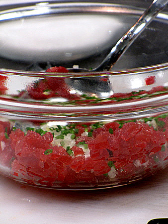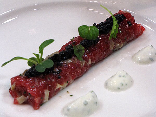 Petit tartar de tonyina amb ostra juràssica i caviar imperial