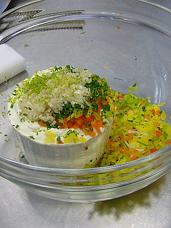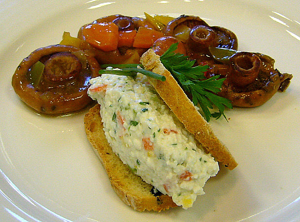 Tàrtar de formatge fresc i rovellons escabetxats