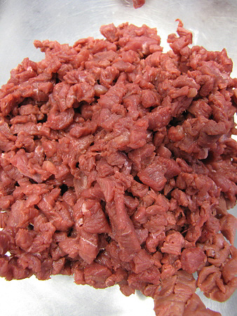 Tàrtar de poltre amb mòres, mostassa i ceba cruixent