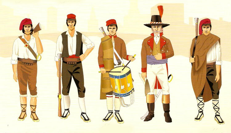 La primera organización militar que se dió al país fué la de varias compañías con el nombre de somatenes, si bien no en la forma que es consuetudinario para esta institución, sinó en otra forma que se asemejaba más á la del servicio militar. Se proyectaron quince compañías, con sus oficiales, sargentos y cabos y para cada una se señaló un contingente de unos cien hombres, que debían aprontar varios pueblos adscritos á la misma compañía. Como á esta fuerza se le dio después otra organización, conforme se verá, solo llegaron á organizarse doce compañías, en la forma siguiente: Comandante de las ocho primeras compañías, las cuales formaba un verdadero cuerpo, D. Felipe de Boixóns, teniente coronel; segundo comandante, D. José Maria Coluby. Primera compañía; capitán D. Francisco Javier de Perramón; teniente D. José Oliva; subteniente, D. Nicolás Massana. Segunda compañía; capitán D. Pedro Boada; teniente D. Ignacio Motger y Albrador; subteniente, D. Francisco de Camps y de Aviñó. Tercera; capitán D. Buenaventura Garrigolas; teniente D. Narciso Garrigolas; subteniente D. Ramon Garrigolas. Cuarta; capitán D. Francisco Camps y Roger; teniente D. Domingo Rigau; subteniente, D. Narciso Estela, después lo fue D. Antonio Carreras. Quinta; capitán D. Jaime Pujadas; teniente D. Agustín Piñol; subteniente D. Paulino Miquelet. Sexta; capitán D. Juan Mallol y Bassols; teniente D. Cristóbal Casellas. Sétima; capitán D. Acisclo Vidal, primero, y despues D. Antonio Befarás; teniente D. Jerónimo de Mata; subteniente D. Narciso de Burgués y de Guardia. Octava; capitán D. José de Doria; teniente D. Juan Puig y Casademont; y subteniente D. Ramon Galtér. Novena; capitán D. Antonio Sala. Décima; capitán D. José Thomas y Casamor; teniente D. Pedro Anglada; subteniente D. Paulino Ferrán y Puig. Undécima; capitán D. Andrés Texidor; teniente D. Domingo Pagés; subteniente D. Francisco Galter. Décima segunda; capitán D. Benito Puig; teniente D. Juan Miquelet; subteniente D. Martirián Puig. Volviendo ahora á la misión encomendada á Torres y Pellicer, de cortar el camino de Barcelona en la marina, debe consignarse, que en el día 7 del mismo mes de julio, empezaron las cortaduras, abriéndose la primera entre Arenys de Mar y Caldetas. Aquel mismo día entró en Mataró una división francesa, después de haber saqueado las poblaciones del Vallés. Al siguiente y para la expedición que se preparaba contra Gerona, se embargaron en Barcelona, con la mayor diligencia, todos los caballos y mulos y se empezó á preparar un inmenso tren de artillería y municiones. Con el auxilio de los somatenes que mandaba Miláns, de la escuadrilla de San Feliu y de la fragata inglesa, se lograron abrir las cortaduras que había concepturado convenientes el jefe de ingenieros, no sin que dejaran de mediar diarias escaramuzas con las tropas francesas, que intentaban estorbar aquellos trabajos. La cuestión del armamento y munición de cuerpos y tercios, era la que en primer término preocupaba á la Junta de Gerona, la cual diariamente tomaba varios acuerdos encaminados á poner todo el país sobre las armas. Observóse bien pronto que no daba resultado la orden del día 4 mandando á los pueblos aprontar un número proporcional de individuos del somaten, para el servicio y defensa de la plaza, pues aunque acudian los somatenes con bastante puntualidad, la corta duración del servicio y el concurrir de hombres de todas edades y condiciones, hacía que no resultaban aptos para ningun servicio regular, sirviendo muchas veces de estorbo para las operaciones inherentes á la guarnición. Estos inconvenientes hicieron cambiar de acuerdo á la Junta que publicó en consecuencia la siguiente circular: "En Circular de 4 del que rige, se manifestó ya á los Pueblos de esta Corregimiento, que una experiencia constante está acreditando que la gente organizada por Compañías, y por Tercios es la que hace un servicio mas útil á la Patria, pues el que toma las Armas, debiendo ser relevado en pocos días, apenas puede adquirir las primeras nociones en un servicio tan momentáneo; por lo que en la misma Circular se propusieron varios premios para estimular al levantamiento de los referidos Cuerpos. Pero las urgencias del día, la precisión de defendernos de nuestros obstinados enemigos, y la obligación que todos tenemos contraída de sostener nuestra Religión, nuestro Rey, y nuestra Pátria, no permite ya que se dexe tan interesante punto á la voluntad, ó generosidad de los Vecinos del Corregimiento, exponiéndole á excesivas demoras, y quizás á la contingencia de no conseguir en la debida oportunidad, sí que es preciso que los Pueblos convencidos de las verdades expuestas, en lugar del número de hombres que se les han mandado aprontar, en clase de Somatenes, para la defensa de esta Plaza, y de todo el Corregimiento, envíen Migueletes efectivos que hagan el servicio personalmente, y con más utilidad, y provecho por la disciplina, é instrucción que inmediatamente se les dará. En consecuencia: de acuerdo de la Junta: Ordeno, Mando, que todos los Pueblos, de este Corregimiento, luego, luego, en lugar de los Somatenes que se les han mandado aprontar para el servicio, y defensa de esta Plaza, envíen en ella igual número de Migueletes efectivos, que le hagan el servicio permanente todo el tiempo que durare la guerra actual, los quales serán socorridos con el Pan y prest diario de 4 reales de vellón; y cuidarán de instruirles los Oficiales destinados al efecto; en la inteligencia de que, así como vayan entrando los referidos Migueletes, quedarán relevados los Somatenes, sin perjuicio de que éstos, y demas gente armada de los mismos Pueblos, deban acudir á los demás puntos del Corregimiento, donde sean llamados en las urgencias que ocurran para la debida defensa. En nombre de la Junta excito con la mayor eficacia á los Reverendos Párrocos, á quienes se entregar