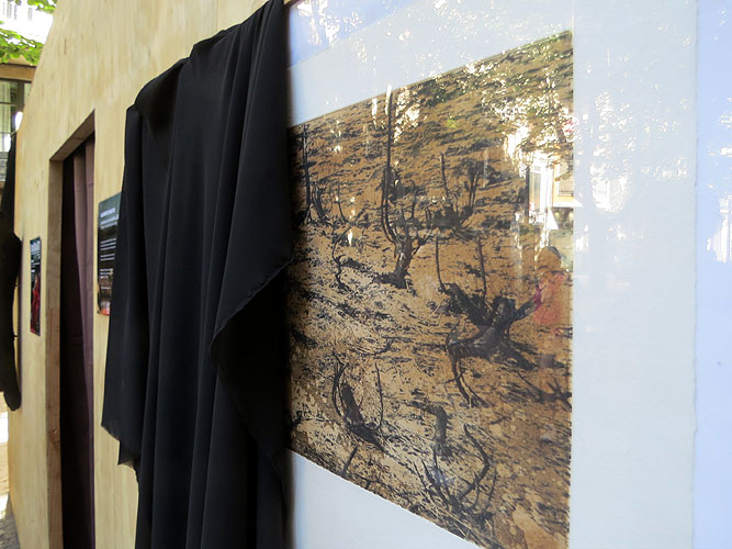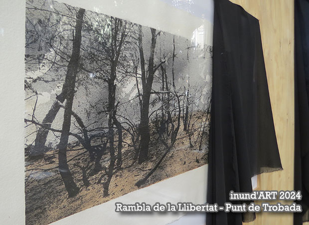 Al Punt de Trobada de la Rambla de la Llibertat es varen exhibir les pintures i instal·lacions amb video d'Assumpció Mateu "La natura com a metàfora: El Bosc Cremat".
