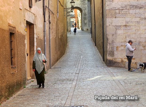 La pujada del rei Martí es troba situada al cor del Barri Vell, i enllaça el carrer de Bellaire amb el Portal de Sobreportes en línia recta entre l'antic convent de Caputxines i l'esglésla de Sant Feliu. A mig camí s'encreua amb el carrer d'en Francesc Samsó i el carrer del Portal de la Barca. El seu trajecte queda ben diferenciat en dos trams: un primer que es configurà en base a estatges habitats, i un segon que voreja amb diversos edificis de caire religiós que hi foren instal·lats als segles XVII i XVIII.