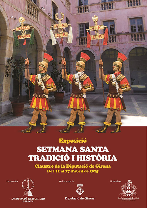Síntesi: Dins les activitats programades per Setmana Santa 2025, al claustre de l'edifici de la Diputació de Girona va tenir lloc de l'11 al 27 d'abril l'exposició "Setmana Santa, tradició i història", a la memòria de l'artesà i manaia Ramon Boix, artesà del llinatge dels bronzers i llauner constructors de les armadures dels Manaies de Girona. L'exposició, que s'afegia a la commemoració dels 2.000 anys de fundació de la Girona romana, organitzada per l'associació "El Baluard", unificava representacions de soldats romans amb figures de la Setmana Santa gironina, amb peces autèntiques de la col·lecció personal de Ramon Boix.