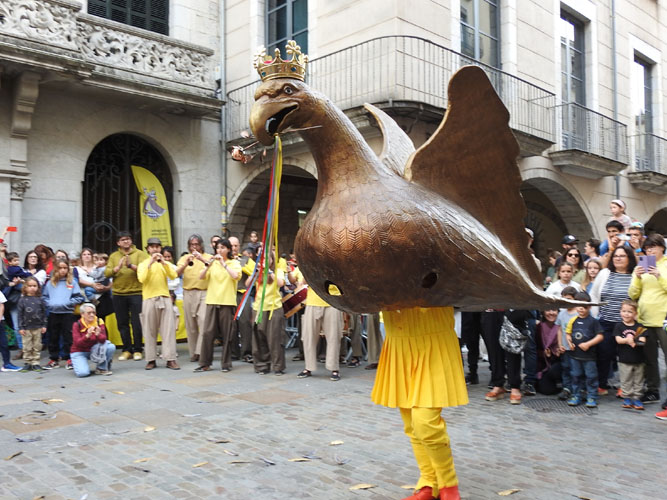 El dissabte 12 d'abril 2025, la Fal·lera Gironina va presentar al Saló de Descans del Teatre Municipal de Girona el seu nou conte "Les plomes daurades de l’Àliga", escrit per Jaume-Albert Cruset i il·lustrat per Marina Montenegro. La protagonista d’aquest nou conte és l’Àliga de Girona que desapareix després d’una tempesta i els gironins l’hauran de trobar. L’acte va ser presentat per la Laia Martín. Al final de l'acte, l’Àliga de Girona va interpretar el seu ball al mig de la plaça del Vi.