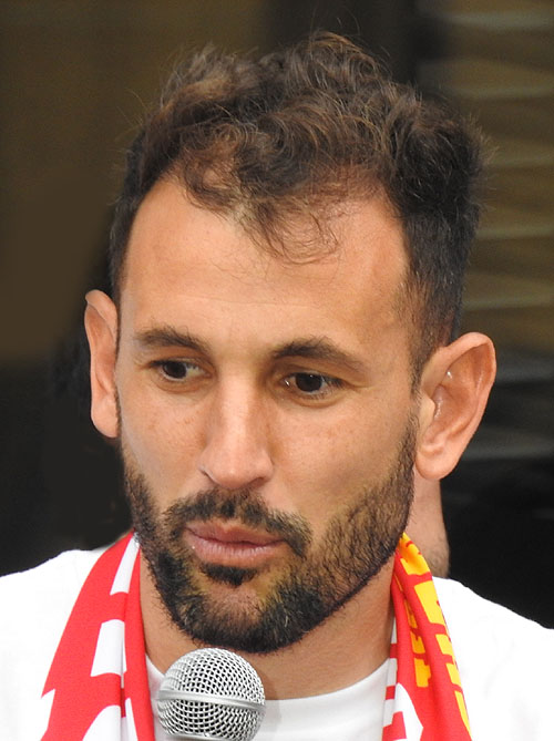 ![]() (Ampliar) - L'entrenador del Girona Míchel Sánchez al balcó de l'Ajuntament. ![]() (Ampliar) - El capità del Girona Christian Stuani al balcó de l'Ajuntament. |