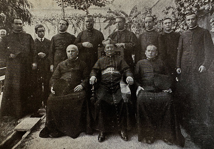 (Ampliar) - Bartomeu Barceló, segon per la dreta, amb el bisbe de Puno al Perú. 1915. Fotografia publicada per Bartomeu Mestre, op. cit.