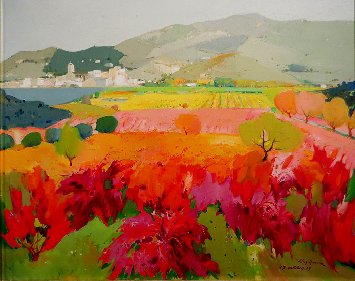(Ampliar) - El Port de la Selva, 1977. Amb l'extensió de vinyes avui desaparegudes, des de la Selva de Mar. 92 x 73.