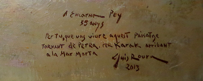 (Ampliar) - El Mar Mort, 2013. 130 x 180. Porta dedicatòria: "A Encarna Pey, 35 anys. Per tu, que vas viure aquest paisatge tornant de Petra, per Karak, arribant a la Mar Morta. Lluís Roura 2013".