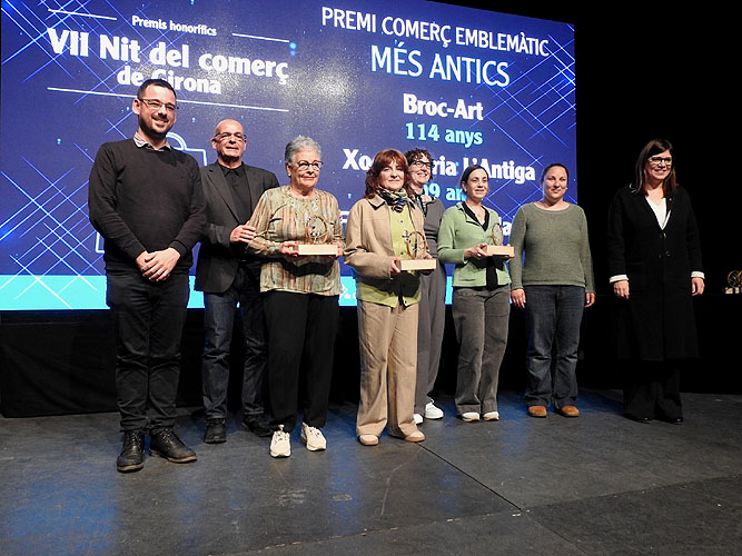 Síntesi: El dilluns 31 de març de 2025 es va celebrar al Centre Cultural La Mercè la VII edició de la Nit del comerça de Girona, acte que es va iniciar amb una ponència de la comunicadora emocional Neus Vila, que portava per títol “Comerços amb segell emocional”. L’acte va ser conduït per la periodista Bàrbara Julbe, i va comptar amb la participació de l’alcalde de Girona, Lluc Salellas i Vilar, i de la vicealcaldessa i regidora de Promoció Econòmica i Serveis Jurídics del consistori, Gemma Geis i Carreras. Durant l'acte es varen premiar disset establiments de la ciutat: Bye Bye Blat (Premi Avantguarda), La Comuna (Premi Ambaixador de Girona), Papers (Premi l'Art de l'Ofici), Gemma & Gal·la (Premi Talent), Bio Brots (Premi Comerç Verd), Moda Re Girona (Premi Valors), Blonda (Premi Comerç Singular), Ramon Boix (Premi Professional darrere el Taulell), Restaurant Divinum (Premi Restauració), Hotel Carlemany (Premi Allotjament) i l'Associació de Comerciants de la Plaça del Mercat de Girona (Reconeixement 80 anys als paradistes del Mercat del Lleó). Durant l’acte, es va fer un reconeixement i un homenatge a aquells comerços emblemàtics de llarga trajectòria de la ciutat que han complert enguany els 75 anys, i els tres establiments més antics de Girona, exceptuant els tres premiats en l’edició anterior. En aquesta ocasió, els tres establiments més antics, que han rebut el Premi Comerç Emblemàtic, han estat Broc-Art (114 anys), Xocolateria L’Antiga (109 anys) i la Farmàcia Creu Blanca (107 anys). També han rebut el Premi de Comerç Emblemàtic, als 75 anys d’història, Imma Nens, Òptica Agustí i Òptica Dalmau. El premi va ser elaborat per Sonata Daou i Elisenda H. Caamaño, de l'Associació d'Artistes La Volta.