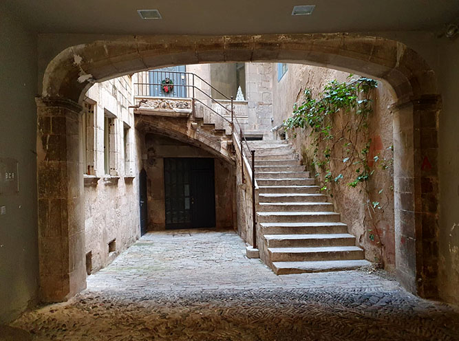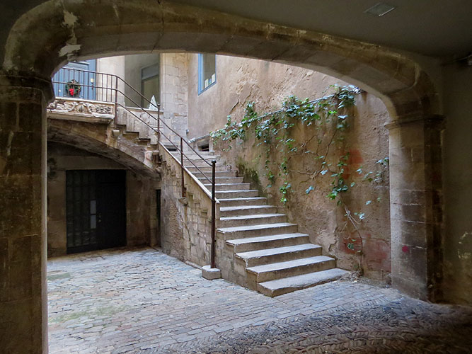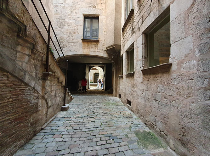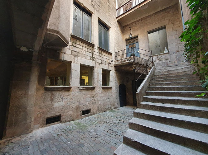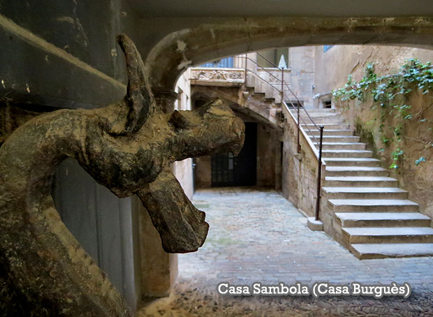 El palau renaixentista situat al número 13 del carrer de la Força conegut amb el nom de Casa Sambola, Pla Dalmau, o Cada Burgès, presenta la façana est, que dóna al carrer de la Força, amb solidesa i austeritat, bastida de carreus homogenis de pedra de Girona, amb les obertures simètriques, indicatives del primer Renaixement. Consta de planta baixa i tres pisos. Ressalta la portalada ampla i alta, elaborada amb grans blocs de pedra picada i closa amb arcada de punt rodó; model predominant durant l'estil gòtic i que perdurà en les construccions posteriors.