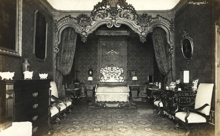 |   La casa de la plaça del Vi. El casal, també conegut com Casa Xammar, situat a la plaça del Vi, és un habitatge desenvolupat al voltant d'un pati interior, des del qual s'accedeix per una escala a les plantes superiors. Són interessants algunes de les sales de la planta pis, amb un gran saló del tron, on s'havien celebrat molts esdeveniments, cambra reial i el menjador, entre d'altres. Els sostres són amb voltes pintades amb símbols de la reialesa i altres propis de la família Carles. La façana de la plaça presenta voltes a la planta baixa i balconades als nivells superiors, amb façanes arrebossades imitant carreus i coberta de teula àrab.   (Ampliar) - Dormitori reial de la casa Carles. Del mobiliari i la decoració, en destaquen el llit amb capçalera, les calaixeres, les cadires, les peces de ceràmica i els quadres. En aquest dormitori hi van dormir D. Juan Bosco i hi va reposar Alfons XIII. 1910-1915. Valentí Fargnoli i Annetta. INSPAI - Diputació de Girona. L'edifici actual és el resultat d'una remodelació de la casa Xammar, antics senyors de Medinyà, que adquirí tres cases contigües. Ocupa tres arcades de la plaça del Vi. L'any 1760 hi residia Joan Baptista de Millós, i el 1761 la comprà Salvador Puig Diern de Torroella de Montgrí, que la compartí amb el seu oncle Ferran Diern. Un membre de la família Carles, que havia acumulat un important patrimoni agrari a Torroella de Montgrí i havia assolit el seu ascens social l'any 1737 en obtenir el títol de cavaller i de noble del Principat de Catalunya el 1760, Salvador de Puig, va adquirir l'antiga casa Xammar de la plaça del Vi de Girona i, el 1772, s'hi varen instal·lar els seus hereus, Martí de Carles i de Quintana (1721-1804) i Marianna, casada amb Robert Robert i Surís. Varen ser ells qui van transformar l'antic casalot medieval, en origen tres habitatges independents, en un veritable palau neoclàssic. Va inaugurar les remodelacions del palau el rei Carles IV d'Espanya l'any 1802.   (Ampliar) - Habitació de la Casa Carles. 1920. Valentí Fargnoli i Annetta. CRDI - Ajuntament de Girona.