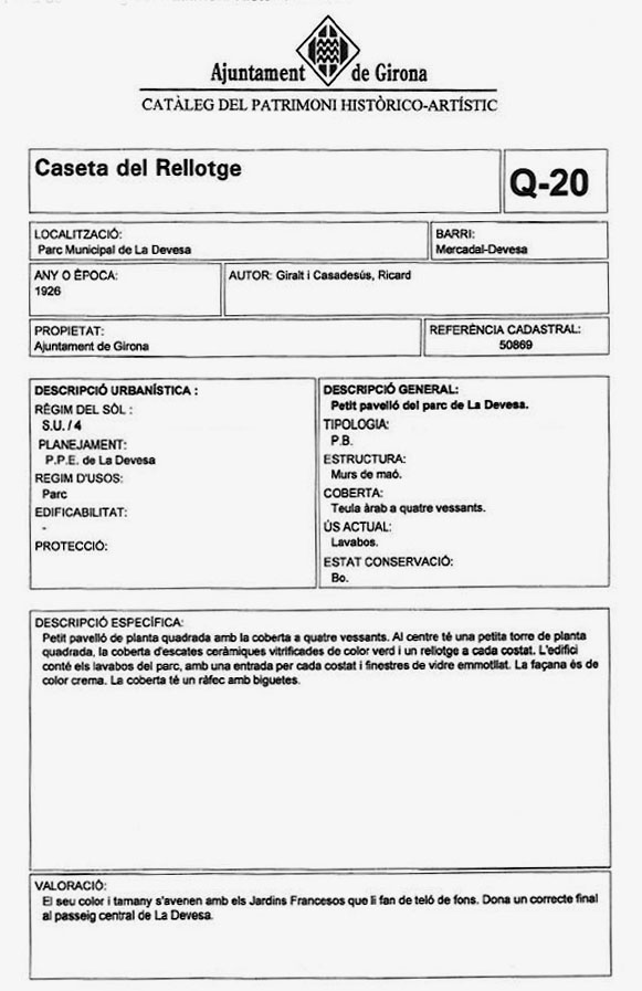 (Ampliar) - Fitxa del Catàleg del Patrimoni Històrico-artístic de l'Ajuntament de Girona.