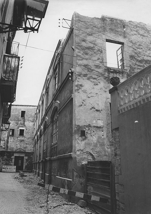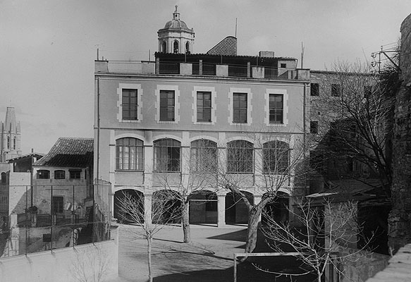 (Ampliar) - Façana de l'antic col·legi dels Maristes, al carrer de la Claveria, abans de ser enderrocat. 1970. Autor desconegut. CRDI - Ajuntament de Girona.