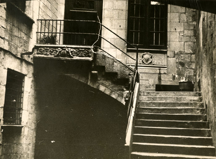 Pati interior i escales de pedra de la Casa Sambola, també coneguda com a Pla Dalmau. 1919. Valentí Fargnoli i Annetta. CRDI - Ajuntament de Girona - (Ampliar)