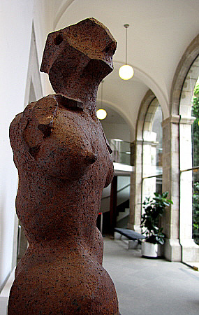17 de maig 2009. Claustre del Carme. Diputació. Assaig de la Banda del Conservatori de Música de Girona. Escultures de Josep Mundet.