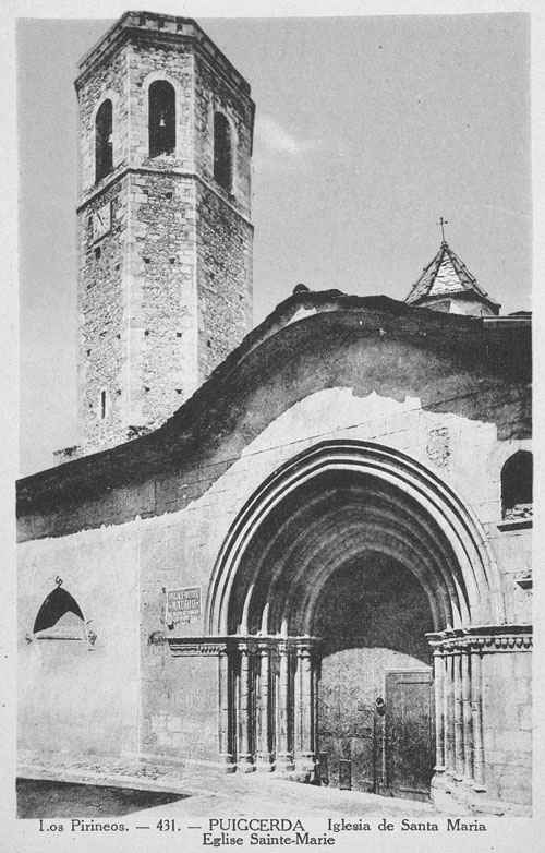 La situació estratègica, que permetia a la Vila controlar dos importants passos pirinencs com el de la Perxa i el de Pimorent, va ser el motiu pel qual, a partir del segle XVI, Puigcerdà es veuria immersa en un continuat ambient bèl·lic. Els atacs, els setges i les escomeses per part de les tropes franceses i espanyoles, en especial les primeres, haurien de convertir-se en un fet continuat; era bàsic conquerir aquest nucli per tal de controlar la contrada. Dels fets amb el francès n'hauria de derivar la partició entre Espanya i França arran del Tractat dels Pirineus (1659-1660), amb l'assentament de la frontera al peu de Puigcerdà. Aquesta situació perduraria fins a l'ocupació napoleònica. ![]() Interior de l'església de Santa Maria. 1900-1930. Autor desconegut. CRDI - Ajuntament de Girona. - (Ampliar) Al segle XVI, sota sobirania dels reis de Castella i d'Aragó, Carles I i Felip II li concediren el privilegi d’encunyar moneda. Va tenir guarnició francesa durant la guerra dels Segadors, contra la qual s’aixecà la població, revolta que va ser durament reprimida pel duc de Noailles (1652); després d’aquesta guerra la vila va ser presa pel quart príncep de Condé (1654), i va quedar en poder de la corona francesa fins a la pau dels Pirineus. Va ser presa novament el 1678 pel duc de Noailles, que en va fer demolir les fortificacions. ![]() Plan de la ville et des attaques de Püycerda en 1678. Bibliothèque nationale de France. - (Ampliar)