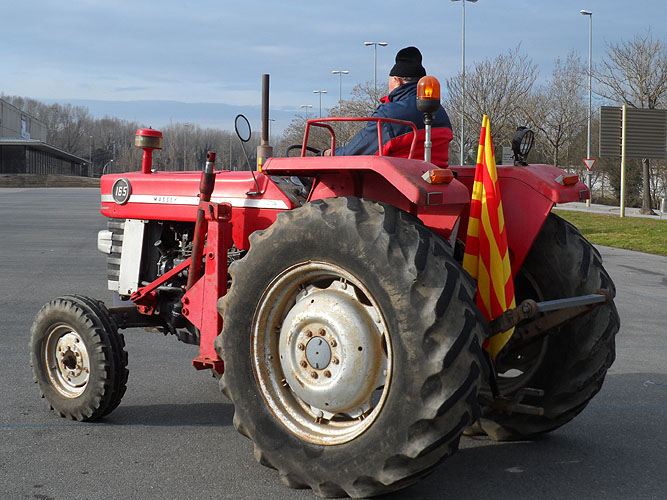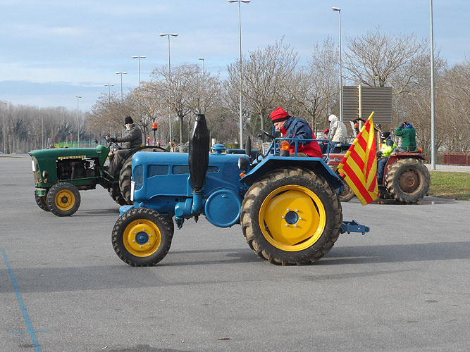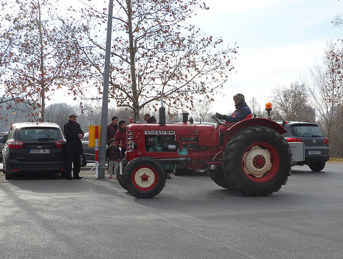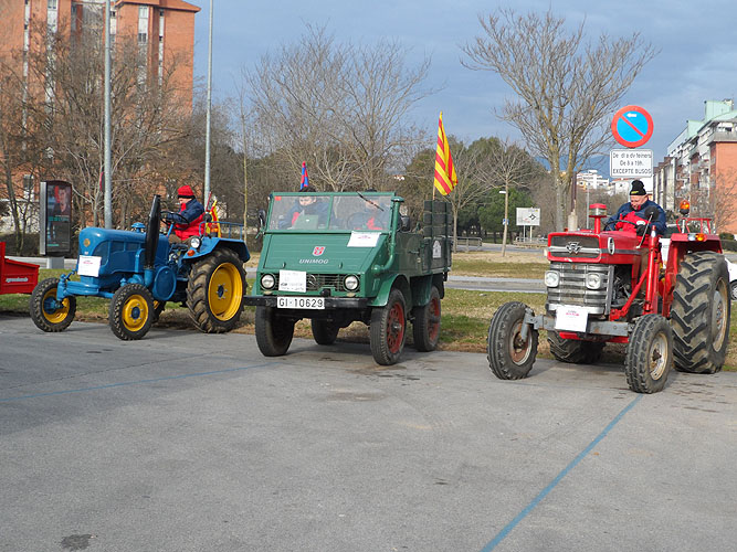 Sortida del pavelló de Fontajau de Girona de la passejada de tractors antics. Imatge: Rocío Fernández.
