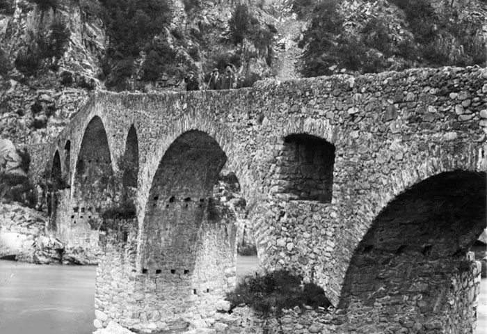 Des del segle XIV hi hagué un sacerdot beneficiat, i arribà a haver-hi un segon sacerdot, de la confraria; aquesta es renovà el 1640, en iniciar-se una etapa que perdurà fins el 1730, quan el bisbe de Vic prohibí les tradicionals processons que pujaven de la vall d’Hostoles, en virtut dels cànons dictats per la repressió borbònica. Extingits el 1820 els sacerdots beneficiats, el 1855 hi hagué un intent, fallit de constituir el Far en parròquia independent, i el 1890 s’hi restabliren sacerdots custodis, que, amb els rectors de Sant Martí Sacalm, tingueren cura del culte i les restauracions. Des del 1939 fins al 1960 hi residí un sacerdot, que ho era també de Cantallops. Abandonat també pels ermitans, el 1970 el bisbat de Vic n'emprengué la restauració, que respectà el caràcter de l’edifici. ![]() Pont sobre el Ter. Susqueda. 1900-1920. Emili Ullés Daura. Arxiu Fotogràfic Centre Excursionista de Catalunya - (Ampliar)