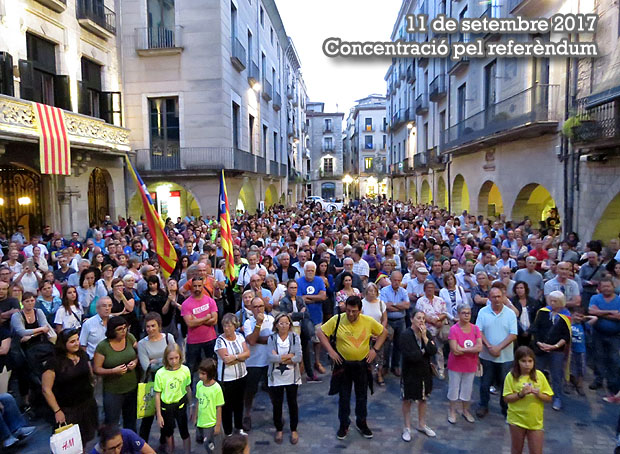 Els representats de la campanya Girona vota, des de la tarima, van llegir un manifest conjuntament amb l’escenificació de la votació en una urna col·locada a la tarima. L'acte es va cloure amb crits d’“independència” i “votarem!” per seguir amb una emotiva cantada d’Els segadors, amb la majoria dels manifestants amb el puny alçat.