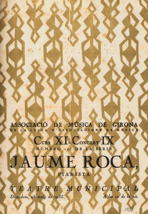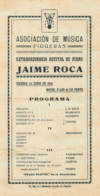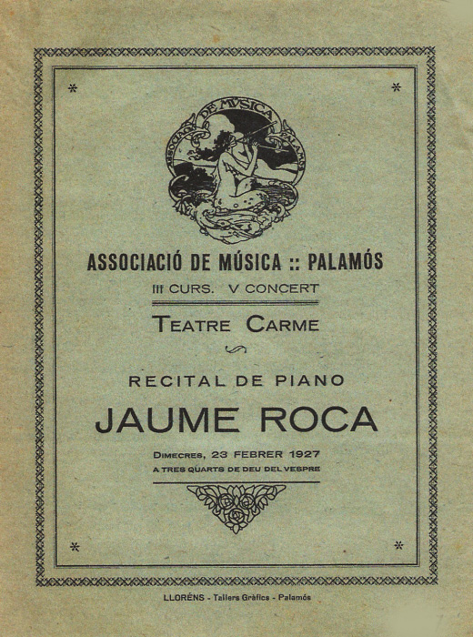 Programes de concerts Programes d'alguns concerts celebrats entre els anys 1926 i 1933. ![]() Programa del concert celebrat a Sant Feliu de Guíxols, el 22 de febrer de 1927. [Ampliar] ![]() Programa del concert celebrat a Palamós, el 23 de febrer de 1927. [Ampliar] ![]() Programa del concert celebrat al Teatre Municipal de Girona, |