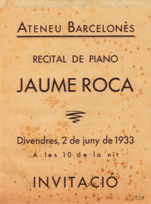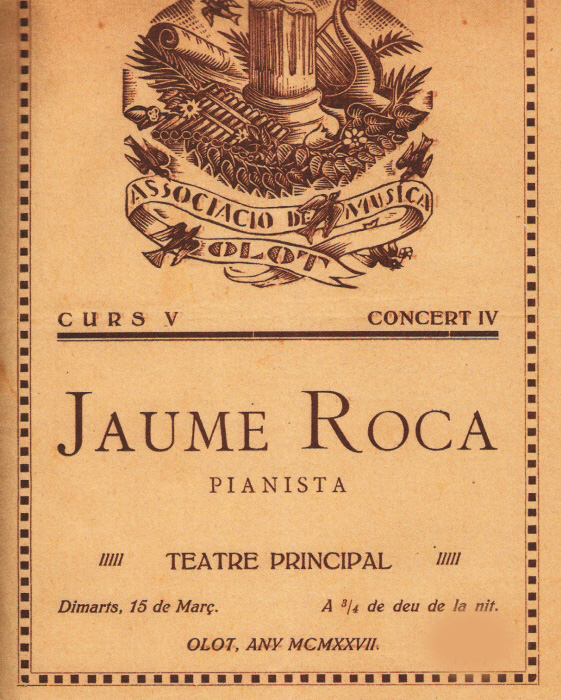 ![]() Programa del concert celebrat a Figueres, 25 de juny de 1926. ![]() Programa del concert celebrat al Teatre Principal d'Olot, 15 de març de 1927. ![]() Programa del concert celebrat a l'Ateneu Barcelonès, 2 de juny de 1933. |