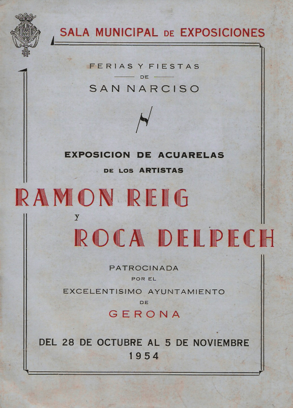 ![]() Catàleg de l'exposició d'aquarel·les a la Sala Municipal d'Exposicions de Girona durant les Fires de Sant Narcís de 1954, amb temes de París, Dijon, Barcelona i Girona. [Ampliar] |