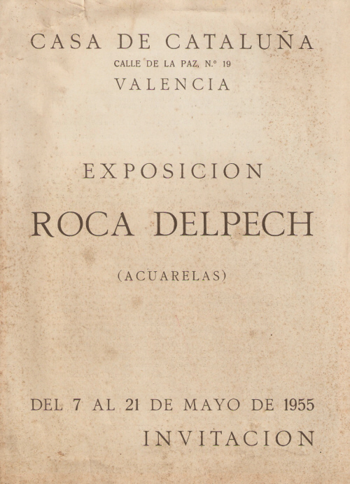 ![]() Catàleg de l'exposició d'aquarel·les a la Casa de Catalunya, a València. Maig de 1955. [Ampliar] |