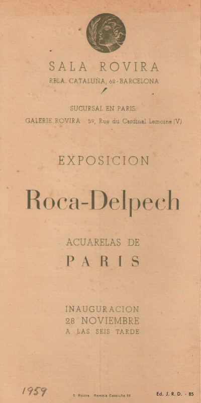 ![]() "Catàleg de l'exposició d'aquarel·les de París, a la Sala Rovira de Barcelona, el novembre de 1959. [Ampliar] |