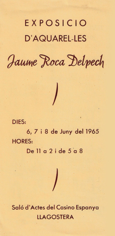 ![]() Catàleg de l'exposició d'aquarel·les al Casino Espanya de Llagostera, el juny de 1965. [Ampliar] |