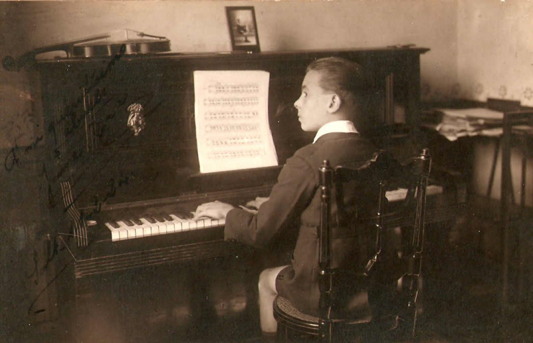 Entre Salt i Girona Jaume Roca Delpech neix a Salt (Girona) el 26 d'agost de 1910, fill de Miquel Roca i Julià i d'Emília Delpech i Famada. La seva família era propietària d'una esparteria a Salt. ![]() Imatge: els pares de Jaume Roca Delpech. 1909-1910. [Ampliar] ![]() Imatge: esparteria de Miquel Roca. Fotografia de V. Fargnoli. [Ampliar] El seu pare, Miquel Roca, excel·lent músic saltenc, l'inicià de ben petit en la pràctica del solfeig, alhora que Josep Saló li ensenyava a tocar el violí. ![]() Imatge: Jaume Roca el 1924. Fotografia d’Octavi Unal. [Ampliar] ![]() Imatge: Jaume Roca el 1924. Fotografia d’Octavi Unal. [Ampliar] |