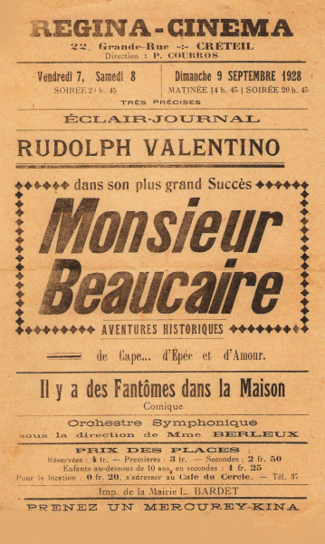 ![]() Imatge: Programa de cinema de l'època del Cinema Regina, a Créteil, on Jaume Roca Delpech tocava el violí. [Ampliar] |
