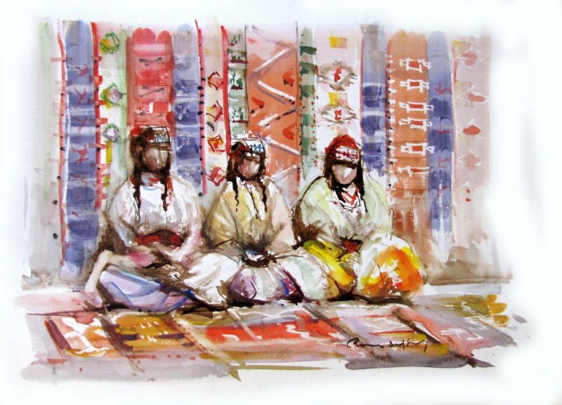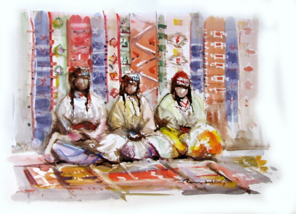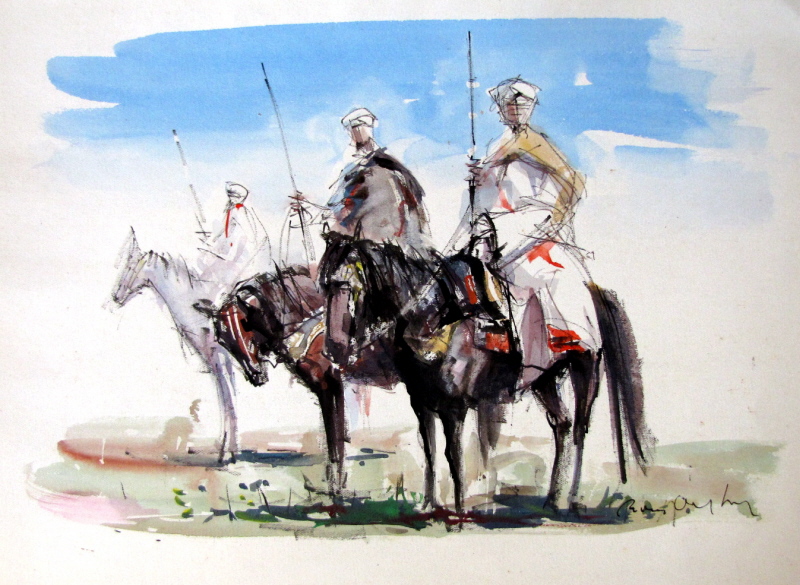 ![]() Tres genets àrabs, Marroc. Circa 1960. 24 x 32 cm. Aquarel·la sobre paper |