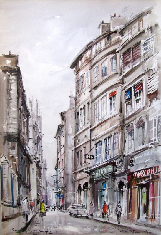 El llegat pictòric A partir de 1957 i fins el 1962 predomina en l'obra de Jaume Roca la temàtica urbana. Aquarel·la on, progressivament, i sobretot en els temes urbans, el color -cada vegada més agrisat-, entre el qual es destaquen petites notes de colors vius, és aplicat amb pinzellades petites i trencades, i pics de color i es lliga cada vegada més amb el dibuix a tinta xinesa. És el període en que obre el ventall dels seus temes: viatja al Marroc, els Estats Units, Mèxic, i, sobretot, a l'Europa central i del nord, on produirà una gran part de la seva obra que encara s'edita. |