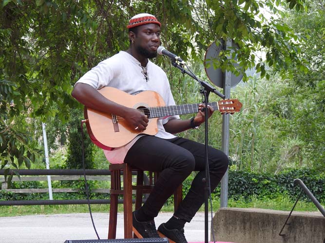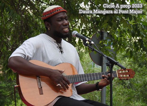 Dins el cicle "A prop", la programació cultural de petit format que porta als barris de la ciutat de Girona propostes artístiques de creadores i creadors emergents de les comarques gironines, el divendres 16 de juny de 2023, Daura Mangara va oferir un concert al Centre Cívic del Pont Major. Poeta afrobanyolí que canta i rapeja en català i soninke. En el seu primer disc, "Poesia per bandits" (2020), rememora el seu pas per la presó. Va ser el protagonista del documental de Manel Serrat "Negre de merda" (2018), curtmetratge que va guanyar el premi del jurat i del públic a la categoria d’estudiants del Festival In-edit. En l’actualitat presenta el programa sobre poesia "El negre de Banyoles" de TV3.